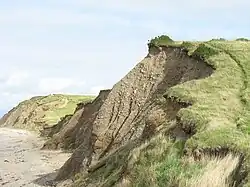 Boulder clay is an unsorted agglomeration of clastic sediment that is unstratified and structureless and contains gravel of various sizes, shapes, and compositions distributed at random in a fine-grained matrix. The fine-grained matrix consists of stiff, hard, pulverized clay or rock flour. Boulder clay is also known as drift clay; till; and unstratified drift.[1][2]
