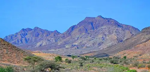 The Boura Mountains (Somali: Buuraha Buura) are a mountain range in Djibouti. With a mean peak height of 1,003 metres (3,291 ft) is the ninth highest point in Djibouti, the ecology of this landform is semi-desert. The mountain is located approximately 32 km (20 mi) east of Ali Sabieh, 13 kilometres (8 mi) from Assamo by road. The altitude and size of the range affects its weather, with precipitation levels varying greatly and climatic conditions consisting of distinct zones. Wildlife live in the higher peaks to elevations of 1,003 metres (3,291 ft). Issa Somali have a long history in the Boura Mountains.