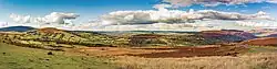 The national park has a total area of 1,344 square kilometres (519 sq mi).[3] The Brecon Beacons and Fforest Fawr uplands form the central section of the park. To the east are the Black Mountains, which extend beyond the national park boundary into England, and to the west is the similarly named but distinct Black Mountain range. These ranges share much of the same basic geology, the southerly dip of the rock strata leading to north-facing escarpments. The highest peak of the Black Mountains is Waun Fach (811 metres; 2,661 ft),[4] and Fan Brycheiniog (802.5 metres; 2,633 ft)[5] is the highest of the Black Mountain.