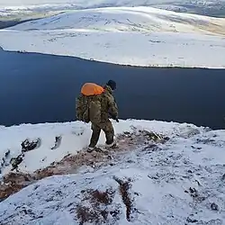 The Brecon Beacons are used for training members of the UK armed forces and military reservists. The Army’s Infantry Battle School is located at Brecon,[34] and the Special Air Service (SAS) and Special Boat Service use the area to test the fitness of applicants.[35][36] An exercise unique to the area is the 'Fan dance', which takes place on Pen y Fan.[37] In July 2013 three soldiers died from overheating or heatstroke on an SAS selection exercise. An army captain had been found dead on Corn Du earlier in the year after training in freezing weather for the SAS.[34]