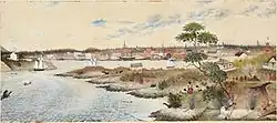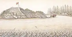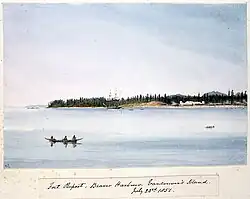 The first known human inhabitants of the area settled in British Columbia at least 10,000 years ago. Such groups include the Coast Salish, Tsilhqotʼin, and Haida peoples, among many others. One of the earliest British settlements in the area was Fort Victoria, established in 1843, which gave rise to the city of Victoria, the capital of the Colony of Vancouver Island. The Colony of British Columbia (1858–1866) was subsequently founded by Richard Clement Moody,[9] and by the Royal Engineers, Columbia Detachment, in response to the Fraser Canyon Gold Rush. Moody selected the site for and founded the mainland colony's capital New Westminster.[10][11][12] The colonies of Vancouver Island and British Columbia were incorporated in 1866, subsequent to which Victoria became the united colony's capital. In 1871, British Columbia entered Confederation as the sixth province of Canada, in enactment of the British Columbia Terms of Union.