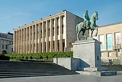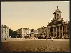 In 1830, the Belgian Revolution began in Brussels, after a performance of Auber's opera La Muette de Portici at the Royal Theatre of La Monnaie.[75] The city became the capital and seat of government of the new nation. South Brabant was renamed simply Brabant, with Brussels as its administrative centre. On 21 July 1831, Leopold I, the first King of the Belgians, ascended the throne,[76] undertaking the destruction of the city walls and the construction of many buildings.[77]