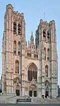 In the early 13th century, the first walls of Brussels were built[59] and after this, the city grew significantly. Around this time, work began on what is now the Cathedral of St. Michael and St. Gudula (1225), replacing an older Romanesque church.[60] To let the city expand, a second set of walls was erected between 1356 and 1383. Traces of these walls can still be seen; the Small Ring, a series of boulevards bounding the historical city centre, follows their former course.