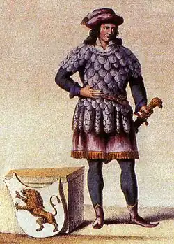 In the 14th century, the marriage between heiress Margaret III, Countess of Flanders, and Philip the Bold, Duke of Burgundy, produced a new Duke of Brabant of the House of Valois, namely Anthony, their son.[61] In 1477, the Burgundian duke Charles the Bold perished in the Battle of Nancy.[62] Through the marriage of his daughter Mary of Burgundy (who was born in Brussels) to Holy Roman Emperor Maximilian I, the Low Countries fell under Habsburg sovereignty.[63] Brabant was integrated into this composite state, and Brussels flourished as the Princely Capital of the prosperous Burgundian Netherlands, also known as the Seventeen Provinces. After the death of Mary in 1482, her son Philip the Handsome succeeded as Duke of Burgundy and Brabant.
