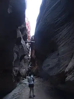 Wire Pass,[6] a short tributary to Buckskin (and the most common means by which Buckskin Gulch is accessed), have features of narrow, curving features of the slot canyons.[7]