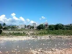 Geographically, Butwal is at the intersection of Nepal's two different National Highways, Mahendra Highway and Siddhartha Highway. It connects western Nepal with the capital Kathmandu through the highway and air links (via Gautam Buddha International Airport at Siddharthanagar). The city stands beside the bank of Tinau River, and at the northern edge of the Terai plain below the Siwalik Hills. Its name, Butwal was derived from Batauli Bazaar , the town's oldest residential area which is located on the western bank of the Tinau River.[4]