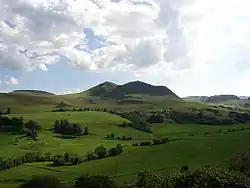 The Cézallier forms a series of plateaus and small volcanic mountains, mainly made up of fluid lava flows (basalt) but also a few craters, the most recent of which are only a few thousand years old (Montchal, Montcineyre) and are sometimes occupied by lakes (Pavin, Chauvet, La Godivelle).[5]