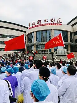 During the initial outbreak in Wuhan, the virus and disease were commonly referred to as "coronavirus", "Wuhan coronavirus",[15] "the coronavirus outbreak" and the "Wuhan coronavirus outbreak",[16] with the disease sometimes called "Wuhan pneumonia".[17][18] In January 2020, the WHO recommended 2019-nCoV[19] and 2019-nCoV acute respiratory disease[20] as interim names for the virus and disease per 2015 international guidelines against using geographical locations (e.g. Wuhan, China), animal species, or groups of people in disease and virus names in part to prevent social stigma.[21] WHO finalised the official names COVID-19 and SARS-CoV-2 on 11 February 2020.[22] WHO Director-General Tedros Ghebreyesus explained: CO for corona, VI for virus, D for disease and 19 for when the outbreak was first identified (31 December 2019).[23] WHO additionally uses "the COVID-19 virus" and "the virus responsible for COVID-19" in public communications.[22]