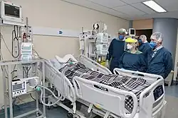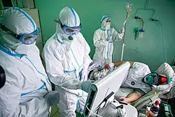 ![]() Medical professionals treating a COVID-19 patient in critical condition in an intensive care unit in São Paulo in May 2020 | |||||||