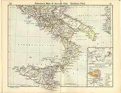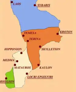 Originally the Greeks used Italoi to indicate the native population of modern Calabria, which according to some ancient Greek writers was derived from a legendary king of the Oenotri, Italus.[10][11]