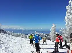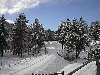 La Sila, which has been referred to as the "Great Wood of Italy",[19][20][21] is a vast mountainous plateau about 1,200 m (3,900 ft) above sea level and stretches for nearly 2,000 km2 (770 sq mi) along the central part of Calabria. The highest point is Botte Donato, which reaches 1,928 m (6,325 ft). The area boasts numerous lakes and dense coniferous forests. La Sila also has some of the tallest trees in Italy which are called the "Giants of the Sila" and can reach up to 40 m (130 ft) in height.[22][23][24] The Sila National Park is also known to have the purest air in Europe.[25]
