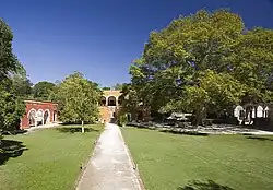 Outside of the city Campeche, much of the notable civil architecture in the state is found on the various former haciendas.[31] Many of these haciendas have been turned into hotels, spas and other tourist attractions. Hacienda Blanca Flor is located in Hecelchakán outside Campeche. This hacienda was a site of one of the bloodiest battles of the Caste War. Hacienda Santa Cruz is between Campeche and Calkiní in the Nunkiní community. It is dated to the middle of the 18th century established to raise cattle. It continued operating until the Mexican Revolution. Hacienda San José Carpizo is in the Champotón municipality, founded in 1871 by José María Carpizo Sánchez and was one of the most important on the Yucatán Peninsula, raising cattle. It survived the Mexican Revolution until its workers abandoned it in the 1940s. Hacienda San Luis Carpizo is located in Champotón and belonged to José María Carpizo, dedicated to agriculture. This hacienda was restored by the Mexican Army to house the Marine Infantry School in 1999. Hacienda Uayamón is near the city of Campeche with origins in the 16th century. It was attacked and its owner killed in the raid by Laurens de Graaf in 1685. It continued to operate until the Mexican Revolution and today it is home to the Hotel de Gran Turismo. Hacienda Tankuché was dedicated to raising dyewood (palo de tinte) but changed later to henequen. Despite losing most of its land in the Revolution, its henequen mill continued to operate until the 1980s.[51]