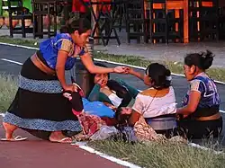 The largest religious festival in the state is Carnival in the city of Campeche. Carnival was introduced in 1582. By 1688, the annual event featured orchestras and in 1815, formal dances called "saraos" were organized which originally were held only in the homes of the elite. Later in the 19th century, events in the streets for the masses became popular, with the various neighborhoods of the city organizing their own events. Eventually, these merged into a citywide celebration featuring various traditional dances such as Baile del Pavo, Son de la Cucaracha, the fandango, fandanguillo and various forms of tropical jaranas. They also include more risqué dances such as those called la Culebra, Los Papagayos and la Contradanza de los Palitos which have Afro-Caribbean influence.[32] Other important religious festivals include Candlemas (Candelaria) in Hool, Champotón and Campeche, feast day of Our Lady of Mount Carmen in Ciudad del Carmen, feast day of Saint Joachim in Palizada, and the feast day of Saint Roman in Campeche, the feast of San Isidro Labrador in Calkiní in May, the feast of the Cristo Negro in San Román, Day of the Dead in all of the state, feast of the Holy Cross in Sabancuy, Carmen in May, feast of Our Lady of Mount Carmen in Ciudad del Carmen in July and the feast of the Señor de la Salud in Hecelchakán in April.[31][33] During these festivals is when the state's most traditional music, called jarana, and traditional dances can be heard and seen.[31][32]