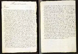 But, you will forgive my enterprise when you know that it is on the order of Monseigneur the Archbishop of Toulouse that I write to you. It was some time ago that the lord did me the honour to come to this place because of the fact that I am his neighbour and servant where to find me the means to make this canal, because he had heard that I had done a particular study of it, I told him that I knew him and promised to visit him at Castres on my return from Perpignan, and to guide him around the area to make him see the possibility. I did this and said in the company of the Lord Bishop of Saint-Papoul and several other persons of substance who visited, all of which was found as I had said, the Lord Archbishop was responsible for drawing up a letter and sending it to you, it is included here but in poor order, because, understanding neither Greek nor Latin, and barely able to speak French, it is not possible for me to explain without stuttering, so what I set out to do is by order and for obedience not of my own volition.