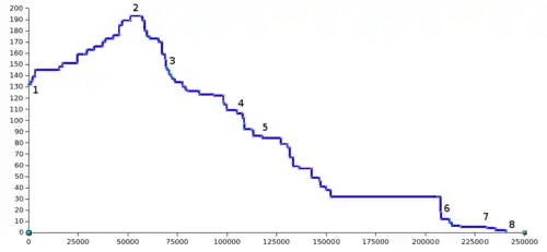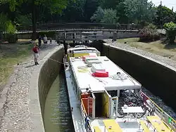 The longest canal pound is 53.87 kilometres (33.47 mi) between Argens Lock and the Fonserannes Locks, while the shortest canal pound is 105 m (344 ft) between the two Fresquel locks.[7]