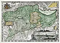 By the 17th century in the Early Modern period, citizenship had become an inherited prerogative, all political bodies elected one another and officials were elected for life.[4] In effect, public offices were now the exclusive prerogative of the gnädige Herren, the "merciful lords", as the small number of noble families now ruling Bern came to be called. In 1605 there were 152 families that were qualified to rule, by 1691 that number was only 104, while towards the end of the 18th century there were only 69 such families. Meanwhile, the land ruled by the town was extending over more and more territory, so that finally it governed 52 bailiwicks.[19] These offices became very lucrative as the Bernese territories grew. Patrician Landvögte, sheriffs, ruled the politically powerless countryside, often using armed force to put down peasant revolts.