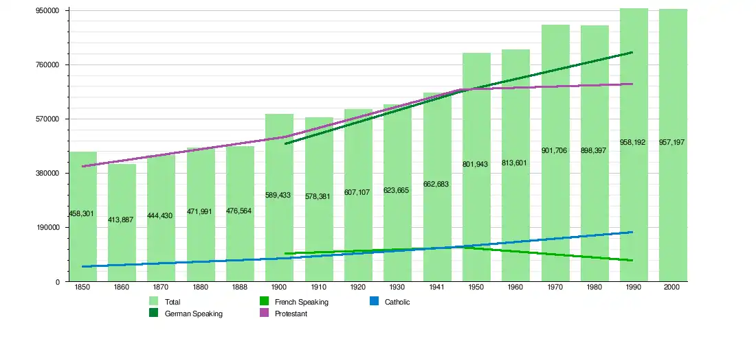 - ^ Swiss Federal Statistical Office STAT-TAB Bevölkerungsentwicklung nach Region, 1850–2000 Archived 30 September 2014 at the Wayback Machine (in German). Retrieved 29 January 2011