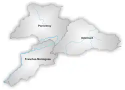 - Porrentruy (Franc-Comtois: Poérreintru, German: Pruntrut) - capital: Porrentruy