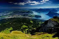 The canton of Lucerne (German: Kanton Luzern [ˈkantɔn luˈtsɛrn]; Romansh: Chantun Lucerna; French: Canton de Lucerne; Italian: Cantone Lucerna) is a canton of Switzerland. It is located in the country's central, German-speaking part. The population of the canton (as of 31 December 2020) is 416,347.[2] As of 2007, the population included 57,268 foreigners, or about 15.8% of the total population.[4] The cantonal capital is the city of Lucerne.
