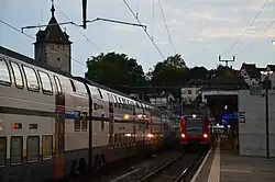 Schaffhausen lies on the busy Milan-Zürich-Stuttgart rail line which is serviced by trains from both the Swiss Federal Railways and German Railways.[18]