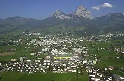 The valley of Schwyz is first mentioned in 972 under the name Suittes. Later, a community of freemen is found settled at the foot of the Mythen. These freemen, possessing common lands, were subject only to the count of the Zürichgau, as representing the German king.[6] The economy benefited from the transit across the Gotthard, but these profits attracted other powers, such as the Habsburgs.