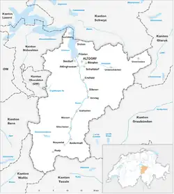 The municipalities of the canton of Uri are: Altdorf, Andermatt, Attinghausen, Bürglen, Erstfeld, Flüelen, Göschenen, Gurtnellen, Hospental, Isenthal, Realp, Schattdorf, Seedorf, Seelisberg, Silenen, Sisikon, Spiringen, Unterschächen, Wassen