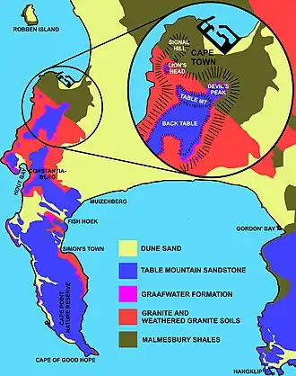 - ^ a b c d Compton, John S. (2004). The Rocks & Mountains of Cape Town. Cape Town: Double Story. ISBN 978-1-919930-70-1.