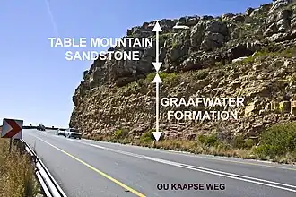 - ^ a b Theron, J.N.; Gresse, P.G.; Siegfried, H.P.; Rogers, J. (1992). Explanation sheet 3318 – The Geology of the Cape Town Area. Pretoria: Geological Survey, Department of Mineral and Energy Affairs, Government Printer. ISBN 978-0-621-14284-6.