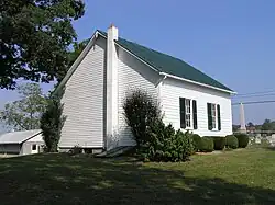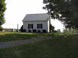 The Baptists established the oldest extant churches in Hampshire County.[19] After the end of the American Revolutionary War, Baptist preachers continued their attempt to gain a foothold in what is now the Eastern Panhandle region.[20] During the Baptists' early growth in Hampshire County, the best known Baptist ministers were John Monroe (1750–1824) and Benjamin Stone (1743–1842).[19] Monroe preached at the North River, Crooked Run, and Patterson's Creek churches during the early 19th century.[21] According to historians Hu Maxwell and Howard Llewellyn Swisher in History of Hampshire County, West Virginia (1897), Monroe was a minister for Primitive Baptists, who were adherent to a strict interpretation of the Calvinist theology of the Ketocton Association.[20][22] Monroe probably established a Baptist church on the site of the present-day Capon Chapel, where he is buried in the church's cemetery.[19][20][23] However, other sources claim that a Baptist congregation began gathering at the Capon Chapel site as early as 1756.[24][25]