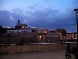 In 840, ancient Capua was burned to the ground by a band of Saracen mercenaries called by Radelchis I of Benevento[7] with only the church of Santa Maria Maggiore (founded about 497) remaining, which was purposely spared by the invading Muslims, whose policy was that to leave houses of worship alone. A new city was built in 856, but at some distance from the former site,[8] where another town later appeared under the name of Santa Maria Capua Vetere ("Capua the Old").