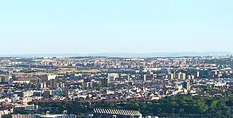 Carabanchel [kaɾaβanˈtʃel] is a district of Madrid, Spain.[1] It lies on the southern (right) bank of the Manzanares, spanning southward down to the M-40 ring road. The district is made up of the neighbourhoods of Abrantes, Comillas, Opañel, Puerta Bonita, San Isidro and Vista Alegre.