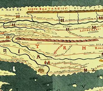 The Eastern Carpathians as 'Alpes Bastarnice' on Tabula Peutingeriana