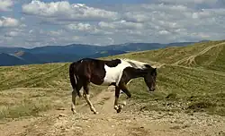 A horse atop the Krasna mountain range in Ukraine's Zakarpattia Oblast
