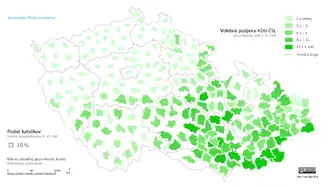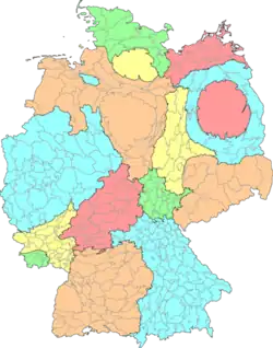 Levasseur's technique does not appear to have been adopted by others, and relatively few similar maps appear for many years. The next notable development was a pair of maps by Hermann Haack and Hugo Weichel of the 1898 election results for the German Reichstag in preparation for the 1903 election, the earliest known contiguous cartogram.[5] Both maps showed a similar outline of the German Empire, with one subdivided into constituencies to scale, and the other distorting the constituencies by area. The subsequent expansion of densely populated areas around Berlin, Hamburg, and Saxony was intended to visualize the controversial tendency of the mainly urban Social Democrats to win the popular vote, while the mainly rural Zentrum won more seats (thus presaging the modern popularity of cartograms for showing the same tendencies in recent elections in the United States).[6]