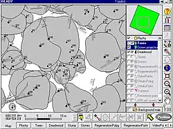 A pre-Mercator nautical chart of 1571, from Portuguese cartographer Fernão Vaz Dourado (c. 1520 – c. 1580). It belongs to the so-called plane chart model, where observed latitudes and magnetic directions are plotted directly into the plane, with a constant scale, as if the Earth were a plane (Portuguese National Archives of Torre do Tombo, Lisbon).Mapping can be done with GPS and laser rangefinder directly in the field. Image shows mapping of forest structure (position of trees, dead wood and canopy).A stylized map inspired by Renaissance cartographic traditions, created using GIS technology and complemented by a hand-crafted linocut.[36]