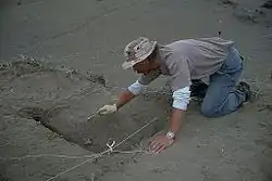 Native Americans used the Catlow Valley for thousands of years before the first European explorers arrived. The valley has a number of petroglyph sites. Some of these petroglyphs may be up to 12,000 years old.[11][22] When he first excavated Catlow Cave in 1934, archaeologist Luther S. Cressman found evidence of Native American habitation dating back to the Paleo-Indian period (8,000 to 12,000 years ago) as well as artifacts from the Early Archaic period (6,000 to 8,000 years ago). Cressman identified four rock fire pits and other housekeeping features within Catlow Cave. Later excavations found stone tools, baskets, woven mats, sandals, rope, and fragments of leather.[10][23] The Skull Creek dunes are another archaeological site that provides evidence of early Native American habitation in the Catlow Valley. That site documents at least 8,000 years of occupation.[24] Prior to the arrival of white settlers, the Catlow Valley area was occupied by the Northern Paiute people.[2]
