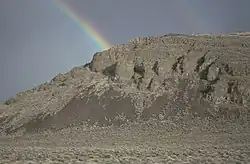 The Catlow Valley is bounded by Hart Mountain on the west and Steens Mountain on the east, and Beatys Butte is southwest of the valley. Warner Peak is the highest point on Hart Mountain. The summit of Warner Peak is 8,012 feet (2,442 m) above sea level.[4] From the crest of the Hart Mountain, the land slopes gently down to the floor of the valley.[5] Steens Mountain's western boundary is Catlow Rim. The rim runs along the east side of Catlow Valley from north to south. At the north end of the valley, the rim begins as gentle rolling hills. The rim gets steeper and high as it runs south. At the south end of the valley, Catlow Rim has a cliff face that rises more than a 1,000 feet (300 m) above the valley floor.[6][7] Beatys Butte is a stand-alone peak southwest of Catlow Valley. Its summit is 7,918 feet (2,413 m) above sea level, which gives it a 3,400-foot (1,000 m) prominence above the valley floor.[8]