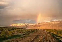 Oregon Route 205 is the only paved road in the Catlow Valley. It follows Catlow Rim approximately 35 miles (56 km) before turning east towards Fields, located on the far side of Steens Mountain. The High Desert Discovery Scenic Byway ends at Fields.[3][51]