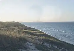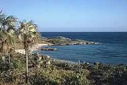 Administratively, the bank and its islands are part of Bimini district of The Bahamas, the main islands of which are 150 km (93 mi) to the north. The closest point of any other named Bahamian land to the bank is Orange Cay (24°56′24″N 79°08′45″W / 24.94000°N 79.14583°W), the southernmost island of the Bimini Chain. The distance between Orange Cay and the nearest dry land of Cay Sal Bank, the Dog Rocks, is 120 km (75 mi).[2] The westernmost tip of Andros is the second closest point of land, approximately 145 km (90 mi) east of Cay Sal Bank.
