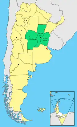 The Center Region of Argentina (in Spanish, Región Centro) is the political and economical association of the provinces of Córdoba, Santa Fe and Entre Ríos.[1] The legal framework for this kind of regional association, the first and only in the country, is Article 124 of the Argentine Constitution. [2]