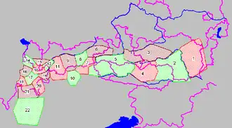 Central Eastern Alps ranges (purple lines showing international borders and borders of Austrian states):