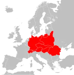 The interwar period brought new elements to the concept of Central Europe. Before World War I, it embraced mainly German-speaking states, and non-German speaking territories were an area of intended German penetration and domination, with German leadership being the 'natural' result of economic dominance.[50] Post-war, the Eastern part of Central Europe was placed at the centre of the concept. At the time, the scientists took an interest in the idea: the International Historical Congress in Brussels in 1923 was committed to Central Europe, and the 1933, Congress continued the discussions.[58]