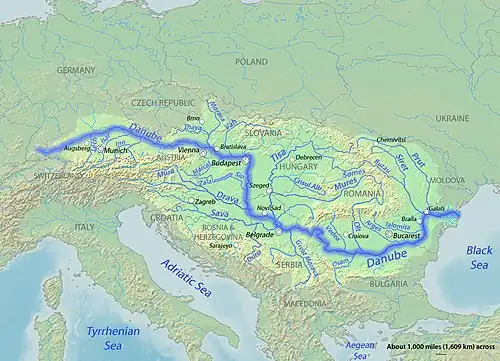 At times, the term "Central Europe" denotes a geographic definition as the Danube region in the heart of the continent, including the language and culture areas which are today included in the states of Austria, Bosnia and Herzegovina, Bulgaria, Croatia, the Czech Republic, Hungary, Moldova, Poland, Romania, Serbia, Slovakia, Slovenia, Ukraine and usually also Germany.[107]