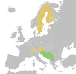 - Italy: Lombardy, Trentino - Alto Adige, Aosta Valley, Veneto, Emiglia Romagna, Liguria, Friuli - Venezia Giulia