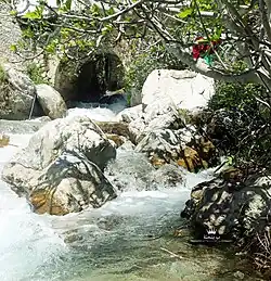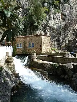 This water source is located just east of the Medina, outside its former walls. It was the original source of water for the city. The spot where the water emerges at the surface was once open but is now enclosed by a stone structure.[16] Nearby and downstream are located an old mill, and a bridge, possibly from the 19th century, which links the two shores of the stream.[16]