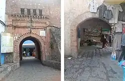 The Medina is the historical district of Chefchaouen, where blue and white paint dominates the walls and houses. The Medina was enclosed by defensive walls and some of its historic gates are still preserved.[16]