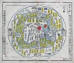 The Cheonhado (Korean: 천하도; Hanja: 天下圖; lit. Map of the world beneath the heavens), or sometimes Cheonha jeondo (천하전도; 天下全圖; lit. Complete map of the world beneath the heavens), is a peculiar type of circular world map developed in Korea during the 17th century. It is based on the Korean term for map, jido, translated roughly as "land picture".[1]