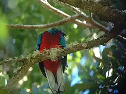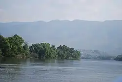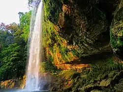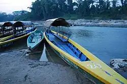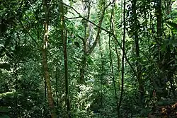 The Lacandon Jungle is situated in north eastern Chiapas, centered on a series of canyonlike valleys called the Cañadas, between smaller mountain ridges oriented from northwest to southeast.[35][60] The ecosystem covers an area of approximately 1.9×106 ha (4.7×106 acres) extending from Chiapas into northern Guatemala and southern Yucatán Peninsula and into Belize. This area contains as much as 25% of Mexico's total species diversity,[61] most of which has not been researched.[62] It has a predominantly hot and humid climate (Am w" i g) with most rain falling from summer to part of fall, with an average of between 2300 and 2600 mm per year. There is a short dry season from March to May. The predominant wild vegetation is perennial high rainforest.[60] The Lacandon comprises a biosphere reserve (Montes Azules); four natural protected areas (Bonampak, Yaxchilan, Chan Kin, and Lacantum); and the communal reserve (La Cojolita), which functions as a biological corridor with the area of Petén in Guatemala. Flowing within the Rainforest is the Usumacinta River, considered to be one of the largest rivers in Mexico and seventh largest in the world based on volume of water.[63]