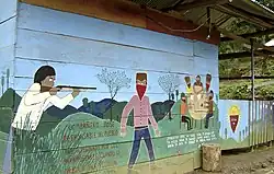 In the mid-20th century, the state experienced a significant rise in population, which outstripped local resources, especially land in the highland areas.[36] Since the 1930s, many indigenous and mestizos have migrated from the highland areas into the Lacandon Jungle with the populations of Altamirano, Las Margaritas, Ocosingo and Palenque rising from less than 11,000 in 1920 to over 376,000 in 2000. These migrants came to the jungle area to clear forest and grow crops and raise livestock, especially cattle.[15][37] Economic development in general raised the output of the state, especially in agriculture, but it had the effect of deforesting many areas, especially the Lacandon. Added to this was there were still serf like conditions for many workers and insufficient educational infrastructure. Population continued to increase faster than the economy could absorb.[15] There were some attempts to resettle peasant farmers onto non cultivated lands, but they were met with resistance. President Gustavo Díaz Ordaz awarded a land grant to the town of Venustiano Carranza in 1967, but that land was already being used by cattle-ranchers who refused to leave. The peasants tried to take over the land anyway, but when violence broke out, they were forcibly removed.[38] In Chiapas poor farmland and severe poverty afflict the Mayan Indians which led to unsuccessful non violent protests and eventually armed struggle started by the Zapatista Army of National Liberation in January 1994.[39]