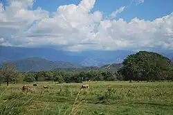 The Gulf Coast Plains (Llanura Costera del Golfo) stretch into Chiapas from the state of Tabasco, which gives it the alternate name of the Tabasqueña Plains. These plains are found only in the extreme north of the state. The terrain is flat and prone to flooding during the rainy season as it was built by sediments deposited by rivers and streams heading to the Gulf.[57]